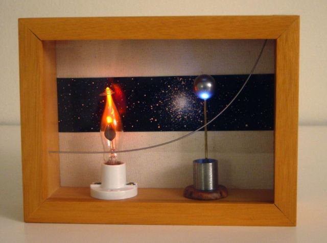 And finally, my 1999 piece Standard Candle, where I used a cold-cathode inverter to drive a flicker bulb. In my defense, this was one of the first artistic things I ever made and my influences are probably pretty obvious. The astrophotograph is globular cluster Messier M10 in a 1995 photograph by Till Credner, who granted me permission to use it.